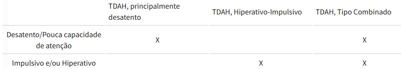 Pessoas com TDAH do tipo combinado demonstram seis ou mais sintomas de desatenção e seis ou mais sintomas de hiperatividade e impulsividade.